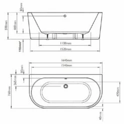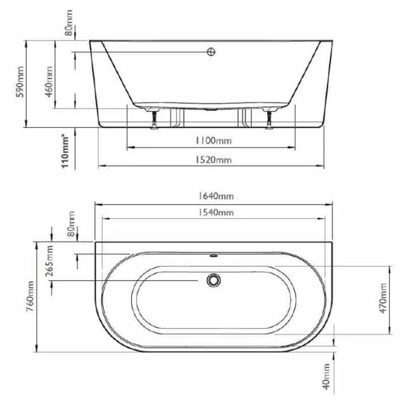 The BC Designs Ancora Acrymite® Acrylic Bath provides a completely seamless, gloss finish and with its versatile design, taps can be mounted on the rim of the Ancora bath. The Ancora’s back rim measures 80mm. Many deck fitted taps can be mounted on this rim, however it is the customer’s responsibility to check that they fit comfortably. There is a void at the centre rear of the bath to allow for plumbing. The U-bend must always go below floor level so please allow for this when specifying. When installing the Ancora you must tile down onto the rim to avoid any gap at the base.