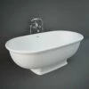 The BC Designs Ancora Acrymite® Acrylic Bath provides a completely seamless, gloss finish and with its versatile design, taps can be mounted on the rim of the Ancora bath. The Ancora’s back rim measures 80mm. Many deck fitted taps can be mounted on this rim, however it is the customer’s responsibility to check that they fit comfortably. There is a void at the centre rear of the bath to allow for plumbing. The U-bend must always go below floor level so please allow for this when specifying. When installing the Ancora you must tile down onto the rim to avoid any gap at the base.