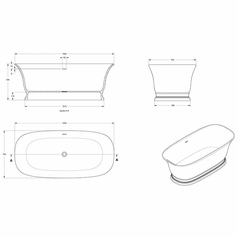 BC Designs Bampton Bath 1555x740mm without Waste – Silk Matt White – BAB033