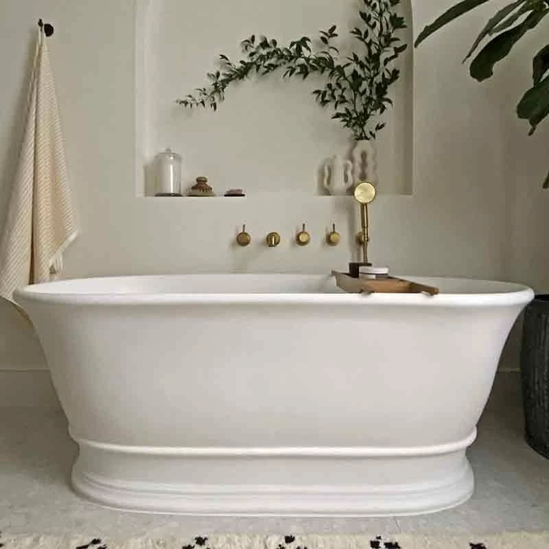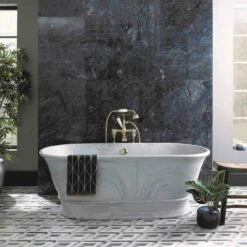 Inspired by the early 20th Century fire clay baths, Bampton is made from the unique Cian®material for better durability and heat-retention. It has a very large bathing area, due to the thin rim achieved in this single casting, yet is a space saver at only 1555mm long. Cian® Solid Surfacing is a renewable decorative surface material manufactured from an advanced blend of acrylic modified polyester resin and mineral fillers. Manufactured from the highest quality raw materials Cian® Solid Surfacing is made to stringent industry standards. It is a colour throughout material providing all the incredible benefits of solid surfacing. The provenance of this product is reproducing the authentic look of early 20th century manufacturing. There will be slight undulations and blemishes in the finish and these should be viewed in this light.