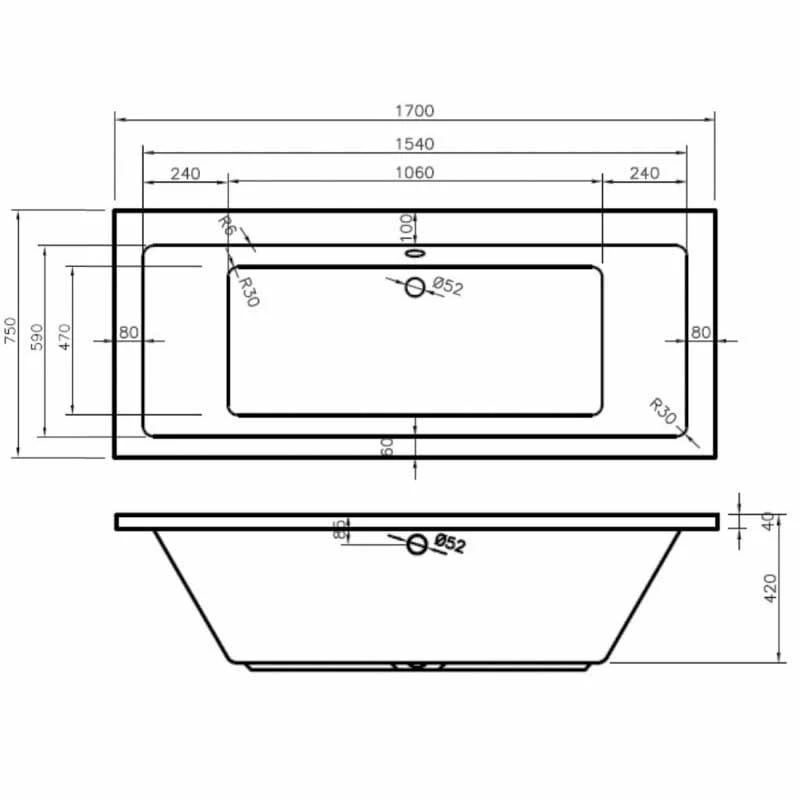 BC Designs Durham 1700x750mm Double Ended Bath – White – BAI049