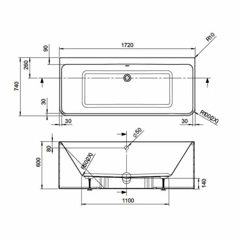 The Murali bath is manufactured using the excellent Acrymite® system. The inner and outer of the baths are seamlessly joined to give clean and modern lines. An overflow filler can be used with this bath. There is sufficient void under this bath to accommodate a low level trap and waste pipe work. The Murali’s rim measures 90mm. Many deck mounted taps can be fitted on this back rim, however it is the customer’s responsibility to check that they fit comfortably.