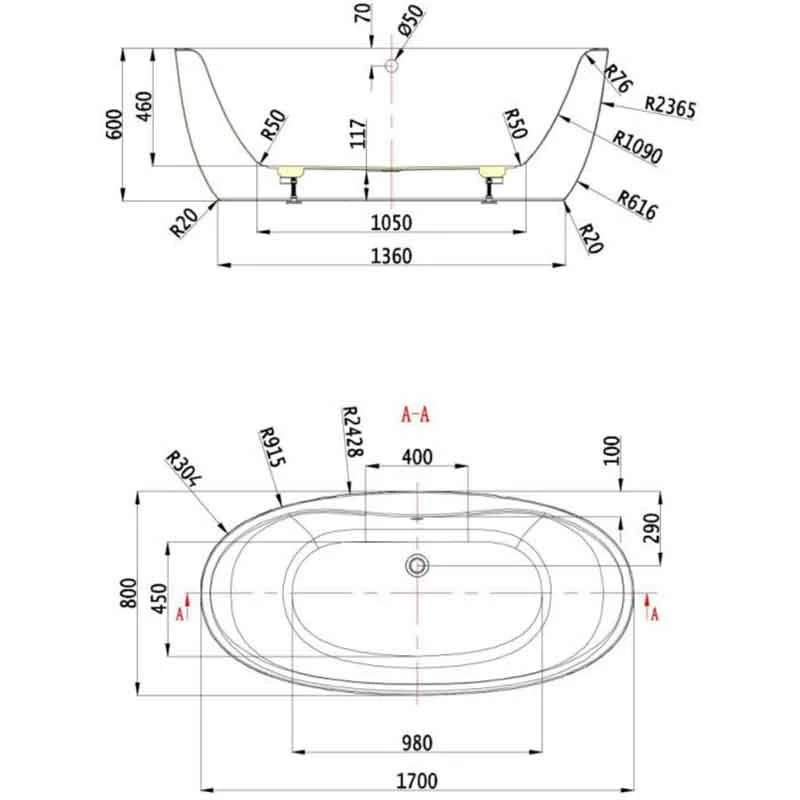 Finish your bathroom with the BC Designs Tamorina Bath in 1700mm. The bath features a modern egg-shaped design with minimal look that would suit well in any modern bathroom style. It provides generous bathing area which gives you plenty of legroom and ample space for a comfortable and relaxing bathing experience. It has a capacity of 245 litres and coated with a gloss white finish that is smooth to touch and will coordinate effortlessly with other bathroom fittings.