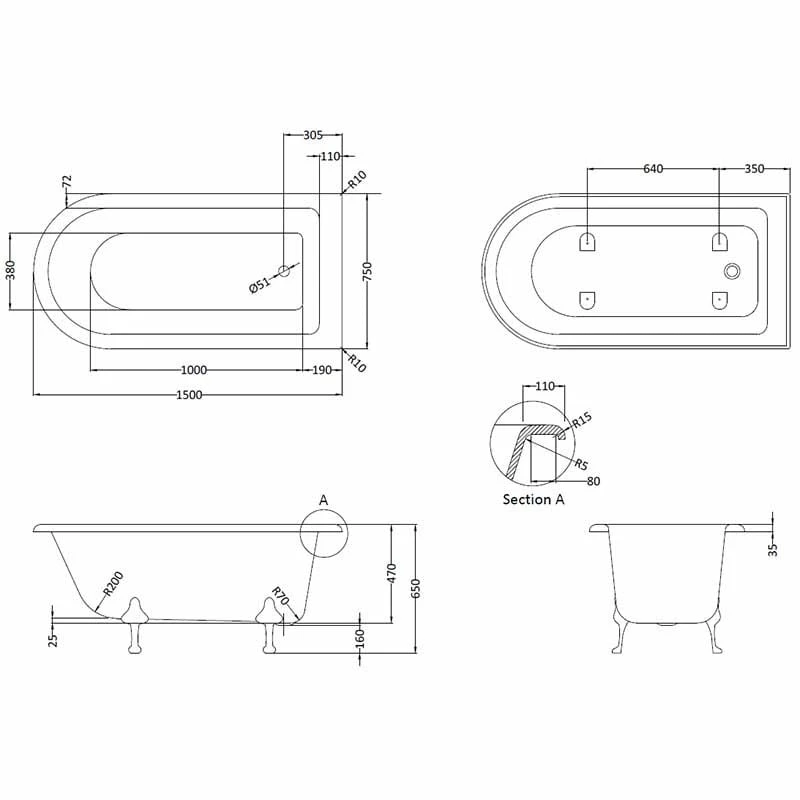 Please Note: This is the bath and feet only. Bath Waste, Overflow & Bath Taps will need to be purchased separately.