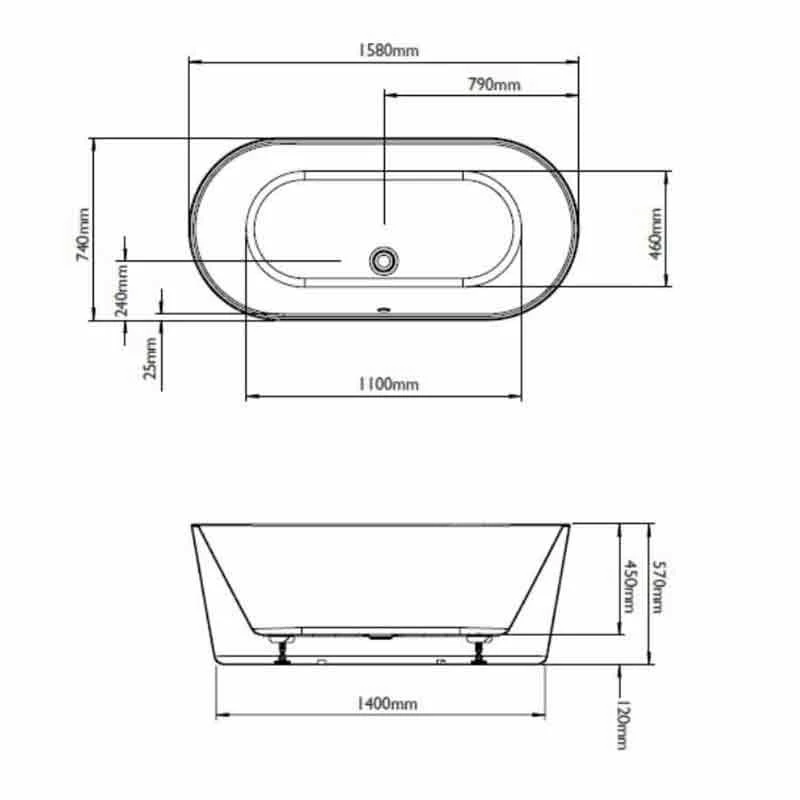 BC Designs Viado Acrymite® Acrylic Bath 1580mm x 740mm – Gloss White – BAS005