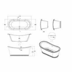 Burlington Admiral 1775 x 885mm Freestanding Soaking Bath No Tap Holes – White – Details