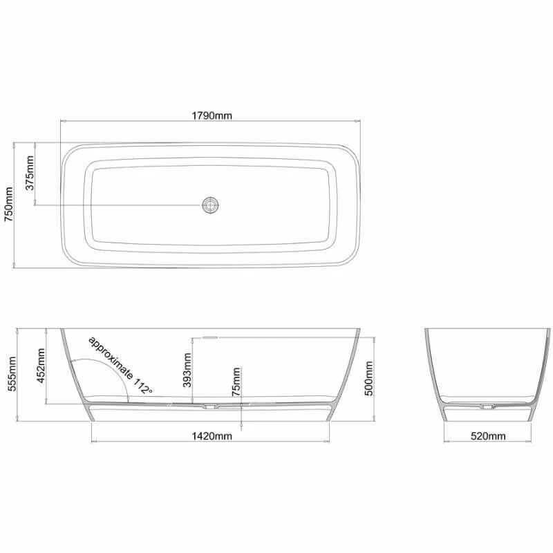Clearwater Vicenza Large Natural Stone Bath 1790 x 750mm – N7D