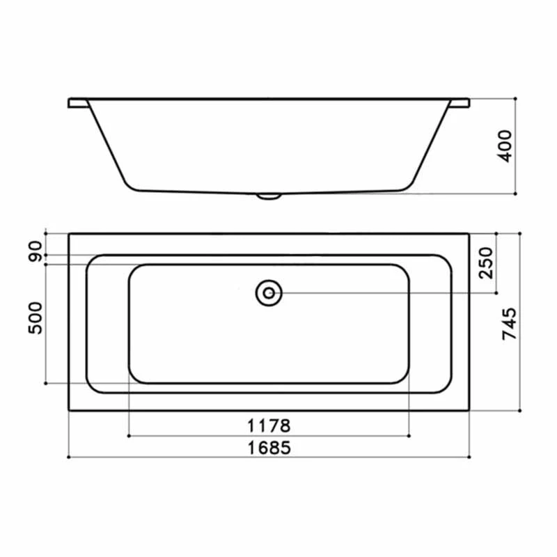 Essential ISLINGTON Rectangular Double Ended Bath 1700x750mm 0 Tap holes – EB516 – Details