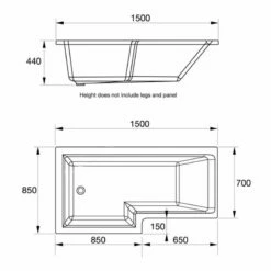 Essential KENSINGTON L Shape Shower Baths 1500x 850mm Left Handed – EB535