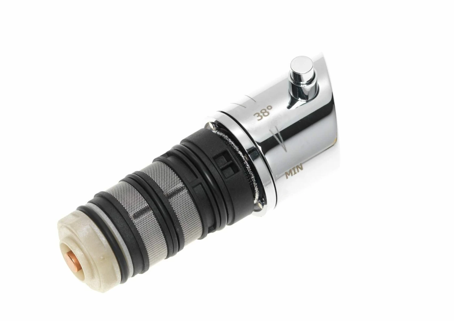 Replacement thermostatic cartridge including metal temperature control knob, suitable for HiQuXT shower models.