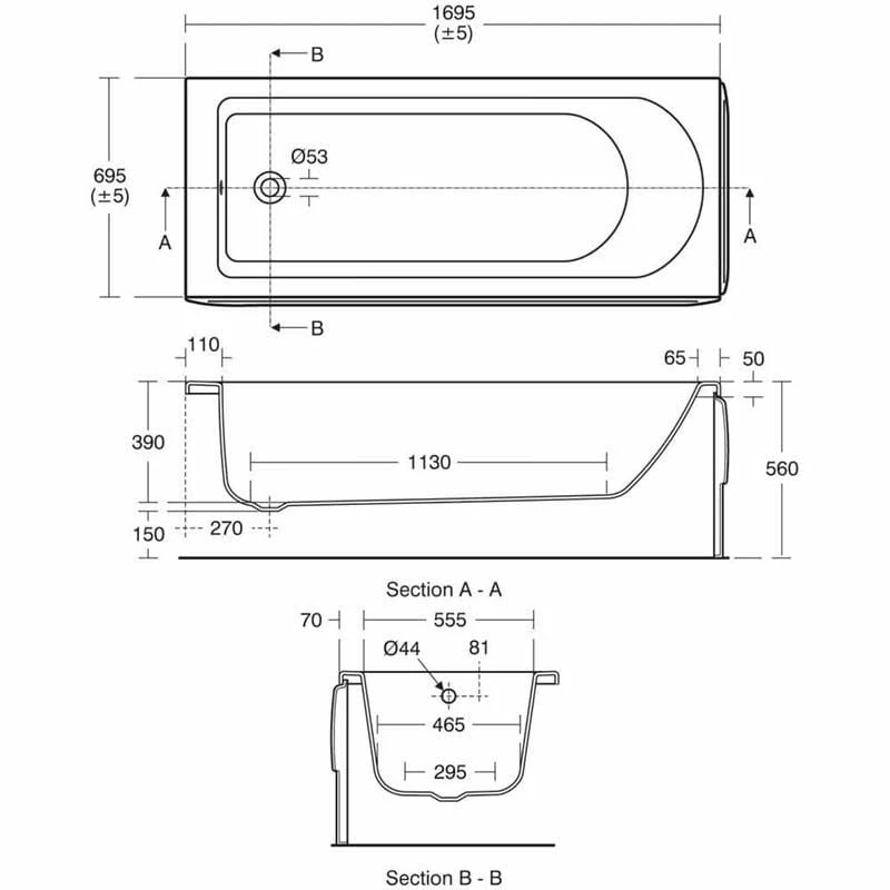 Ideal Standard TESI Rectangular Bath 0 Tap Holes 1700x700mm – White – T000701
