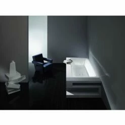 - Generously sized storage area that can also be used as a sit or to accommodate bath rim tap fittings
