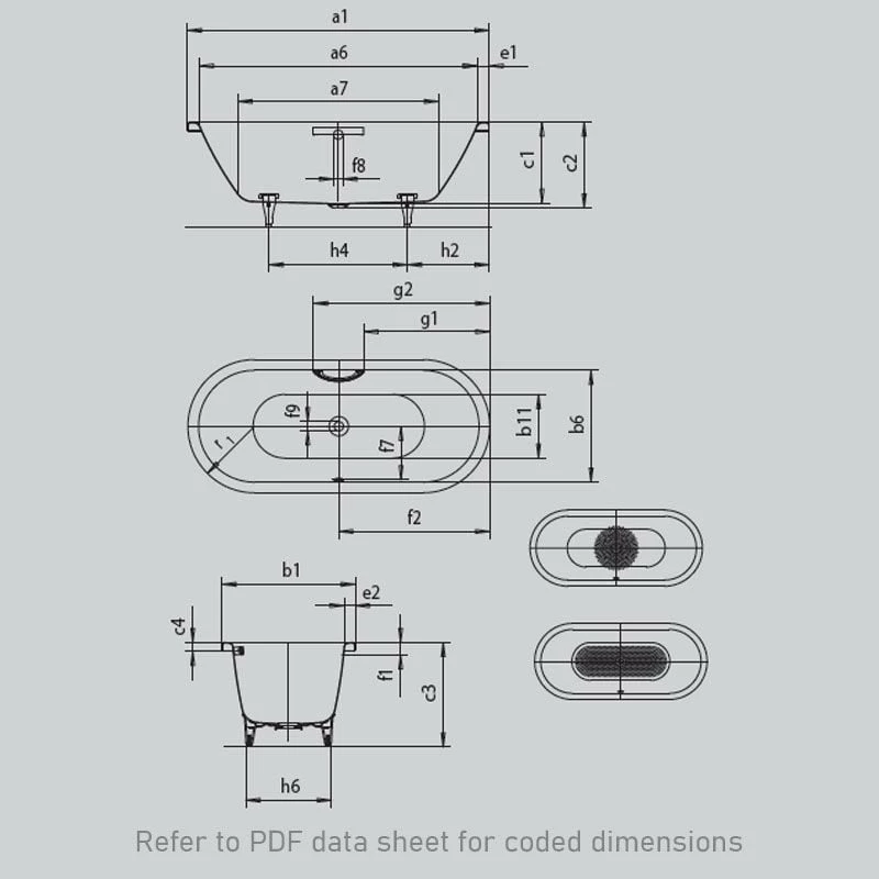 Kaldewei Centro Duo Oval 1800 x 800mm Bath with No Tap Holes (Alpine White) 282800010001 – Details