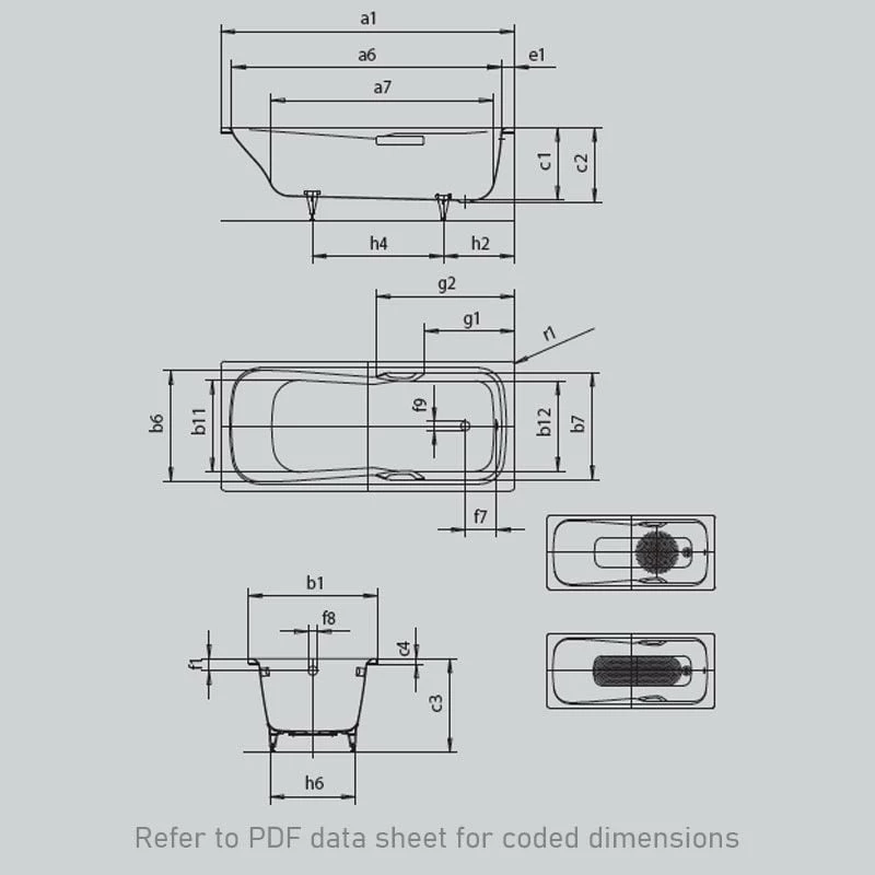 Kaldewei Dyna Set Star 1700 x 750mm Bath with Grip Hole, Anti-Slip & 2 Tap Holes (Alpine White) 226225000001 – Details