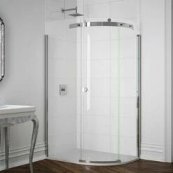 The Merlyn 10 Series 1 Door Offset Quadrant Shower Enclosure with tray is a stunning and spacious shower enclosure that is perfect for any bathroom. It features a single curved shower door with smooth roller bearings, 10mm toughened safety glass, and Mershield Stayclear protection. This shower enclosure is sure to make a statement in your bathroom.