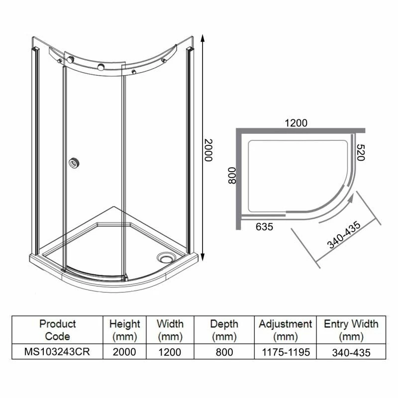 Merlyn 10 Series 1 Door Offset Quadrant Shower Enclosure Right Hand with Tray 1200 x 800mm – Clear Glass – MS103243CR