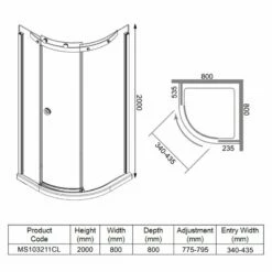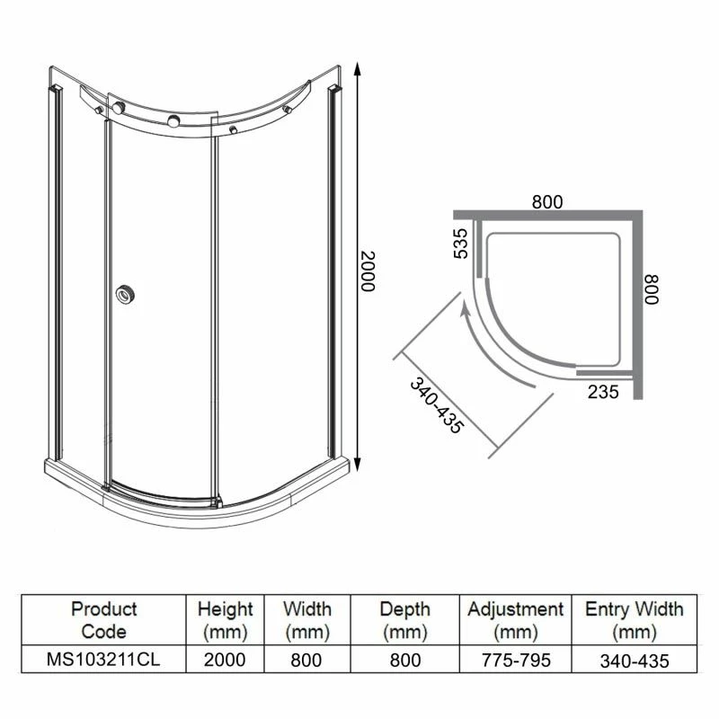Merlyn 10 Series 1 Door Quadrant Shower Enclosure Left Hand with Tray 800mm – MS103211CL