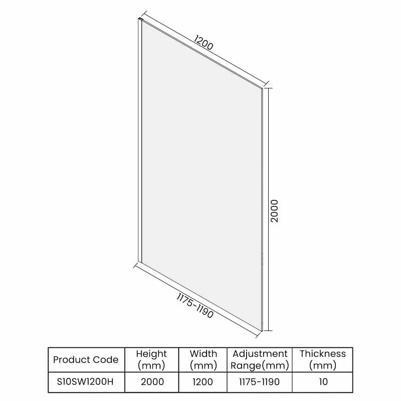 Merlyn 10 Series Shower Wall including Wall Profile & Stabilising Bar 1200mm – S10SW1200H