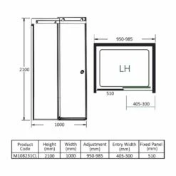 Merlyn 10 Series Sliding Shower Door Left Hand 1000mm – M108231CL