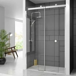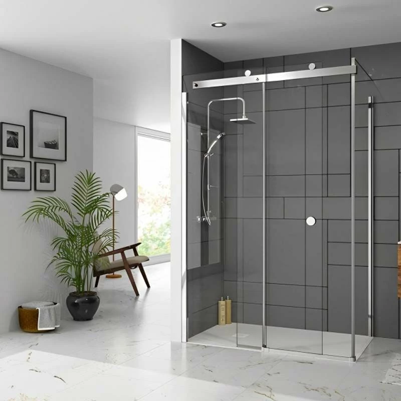 The Merlyn 10 Series Sliding Shower Door is a versatile choice for a shower enclosure. It can be installed with or without a side panel, making it perfect for wetrooms or traditional showers. The door is made from toughened glass with a Mershield Stayclear Easyclean Protected Glass coating, which makes it easy to keep clean. It also has a quiet closing mechanism and a lifetime guarantee on the frame.