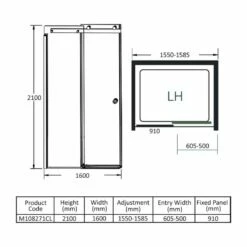 Merlyn 10 Series Sliding Shower Door Left Hand 1600mm – M108271CL