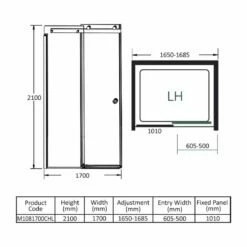 Merlyn 10 Series Sliding Shower Door Left Hand 1700mm – M1081700CHL