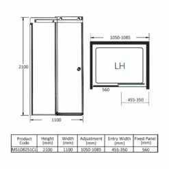 Merlyn 10 Series Sliding Shower Door Left Hand with Tray 1100mm – MS108251CL