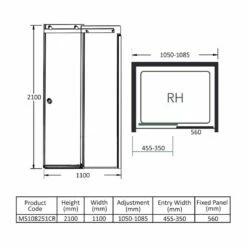 Merlyn 10 Series Sliding Shower Door Right Hand with Tray 1100mm – MS108251CR