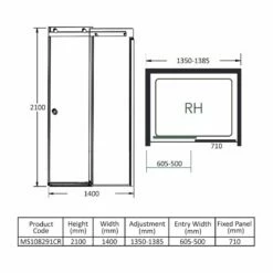 Merlyn 10 Series Sliding Shower Door Right Hand with Tray 1400mm – MS108291CR