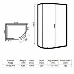 Merlyn 8 Series 1 Door Offset Quadrant Left Hand Including Merlyn MStone Tray 1200 x 900mm – MS83241L