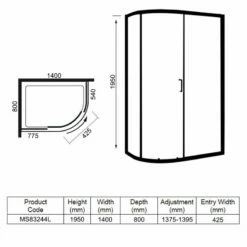 Merlyn 8 Series 1 Door Offset Quadrant Left Hand Including Merlyn MStone Tray 1400 x 800mm – MS83244L