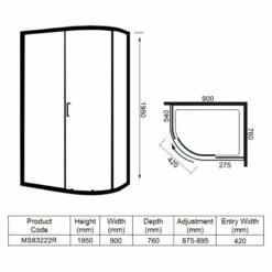 Merlyn 8 Series 1 Door Offset Quadrant Right Hand Including Merlyn MStone Tray 900 x 760mm – MS83222R