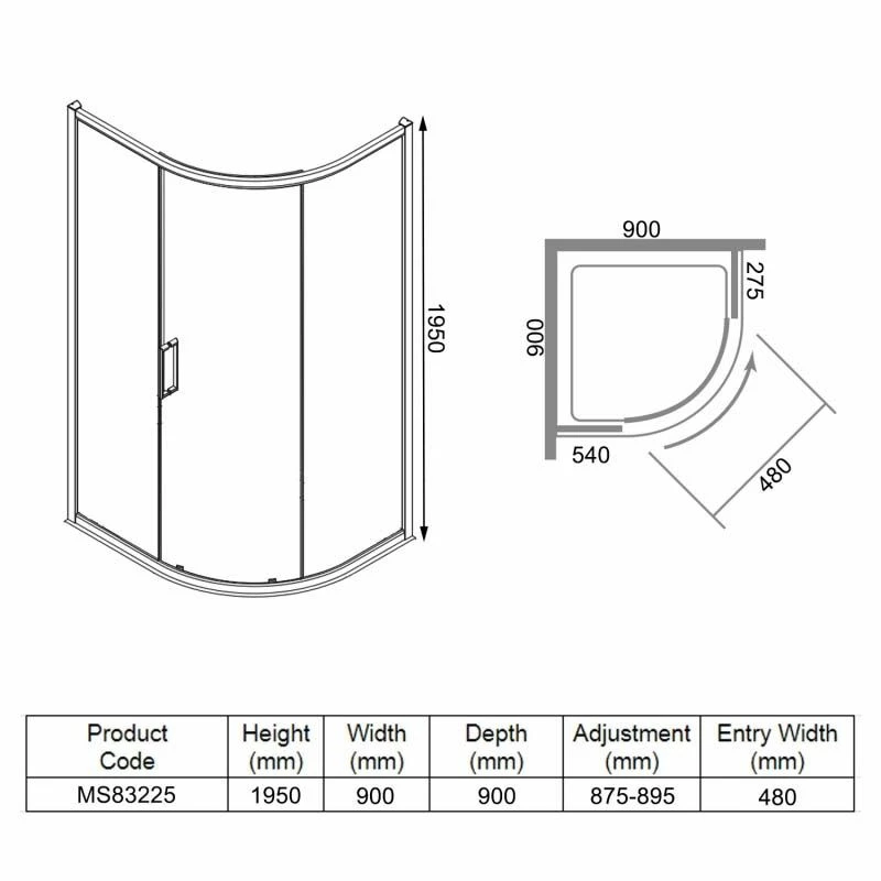 The Merlyn 8 Series Single Door Quadrant Shower Enclosure is just one of the beautifully designed and engineered enclosures in the 8 Series range. This product is an ideal choice for any bathroom that has limited space available and comes with Mershield Stayclear easy clean protected glass to keep the glass looking shiny and new for longer. Complete with a Merlyn Mstone shower tray which are coated with an antibacterial coating protecting against bacteria and are made from ABS capped acrylic giving them a high degree of strength, this shower enclosure really makes a great addition to any bathroom