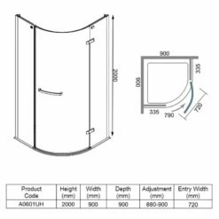 Merlyn 8 Series Frameless 1 Door Quadrant Shower Enclosure 900mm – A0601UH
