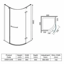 Merlyn 8 Series Frameless 1 Door Quadrant Shower Enclosure with Tray 900mm – A0601UHB