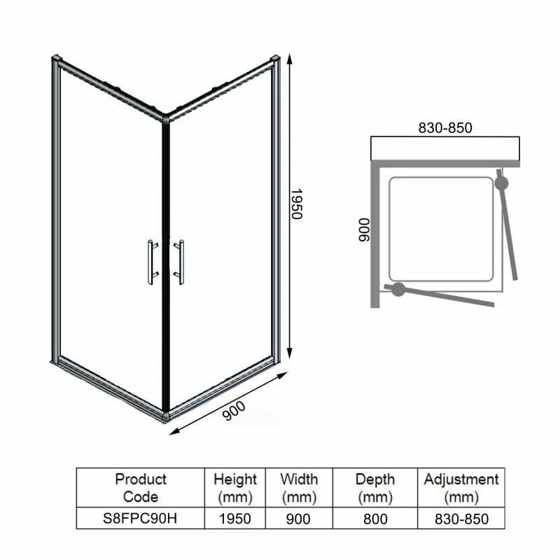Merlyn 8 Series Frameless Double Pivot Shower Wall 900 x 900mm – S8FPC90H