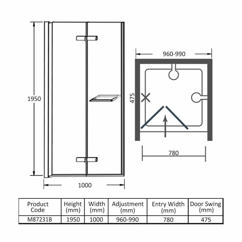 Merlyn 8 Series Frameless Hinged Bifold Shower Door with Tray 1000mm – M87231B