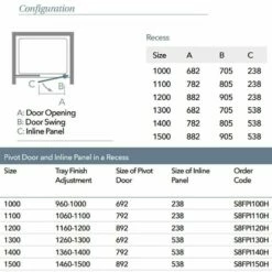 Merlyn 8 Series Frameless Pivot Shower Door & Inline Panel 1200mm – S8FPI1202H