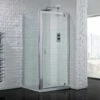 The Merlyn 8 Series Pivot Shower Door & Inline Panel is a beautiful and practical frameless shower enclosure that is perfect for any modern bathroom. It is a space-saving solution that makes shower cleaning easy, thanks to its inward and outward opening swing. It also features a solid chrome double handle, cover caps, concealed fixings, and is reversible and wetroom compatible. Comes with a Lifetime manufacturer guarantee.