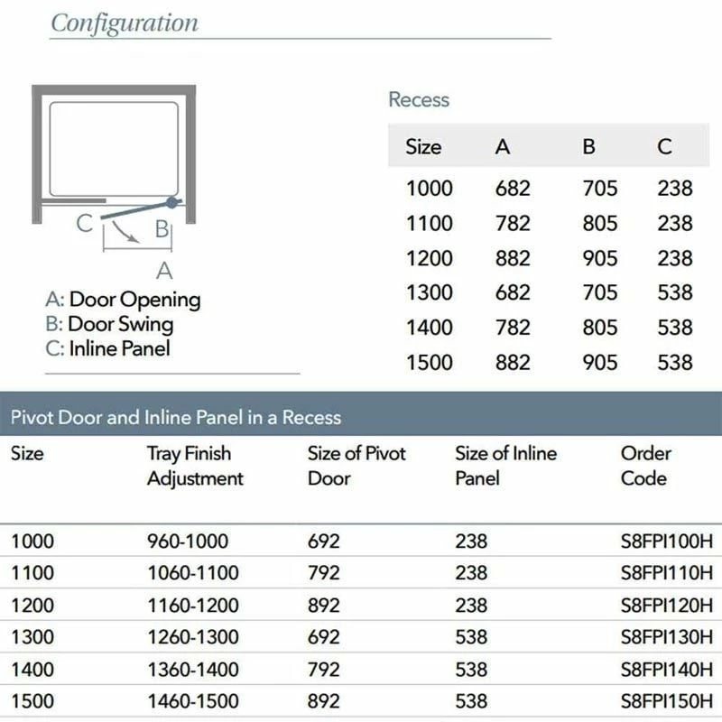 Merlyn 8 Series Frameless Pivot Shower Door & Inline Panel 1200mm – S8FPI1203H