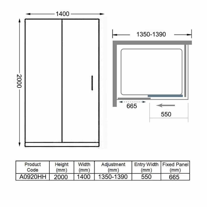 Merlyn 8 Series Frameless Sliding Shower Door 1400mm – A0920HH