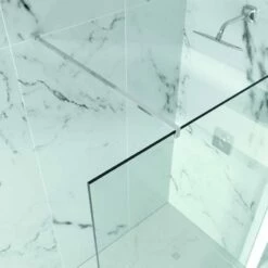 The Merlyn 8 Series Showerwall is both stylish and functional. The large glass panel will make a statement in any bathroom. The frameless toughened safety glass is coated with Mershield Stayclear, which can help prevent the build-up of limescale and soap deposits.