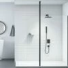 The Merlyn Black Showerwall Wetroom Panel is a sleek and stylish wetroom screen that comes in various sizes. It features 8mm toughened glass, a matt black profile, and a minimalist frameless design. The showerwall is reversible and includes a stabilising bar. It is also protected by Mershield Stayclear, which ensures the glass maintains its sparkle for years to come.