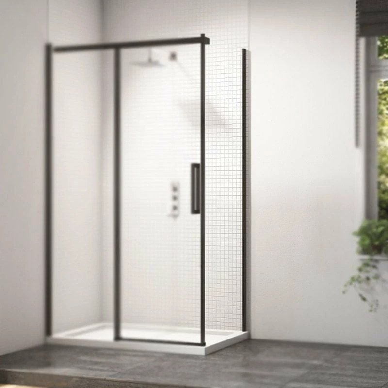 This high-quality side panel has style that will stand out and contrast in your bathroom space. It is made from 8mm clear glass with a matt black frame and seals. It is reversible and wetroom compatible, and can be used with the Merlyn Black Sliding Shower Door. The Mershield Stayclear coating ensures the glass stays sparkling for years to come.