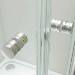 Modern and stylish sliding shower door with safety glass, chrome details, and easy-clean features. The Merlyn Ionic Source door features an Easy Fit frame with bottom rollers for smooth opening, a chrome handle, and magnetic seals to close securely. It is also easy to keep clean, with quick release rollers and Stayclear protected glass. The door is reversible and compatible with shower trays.