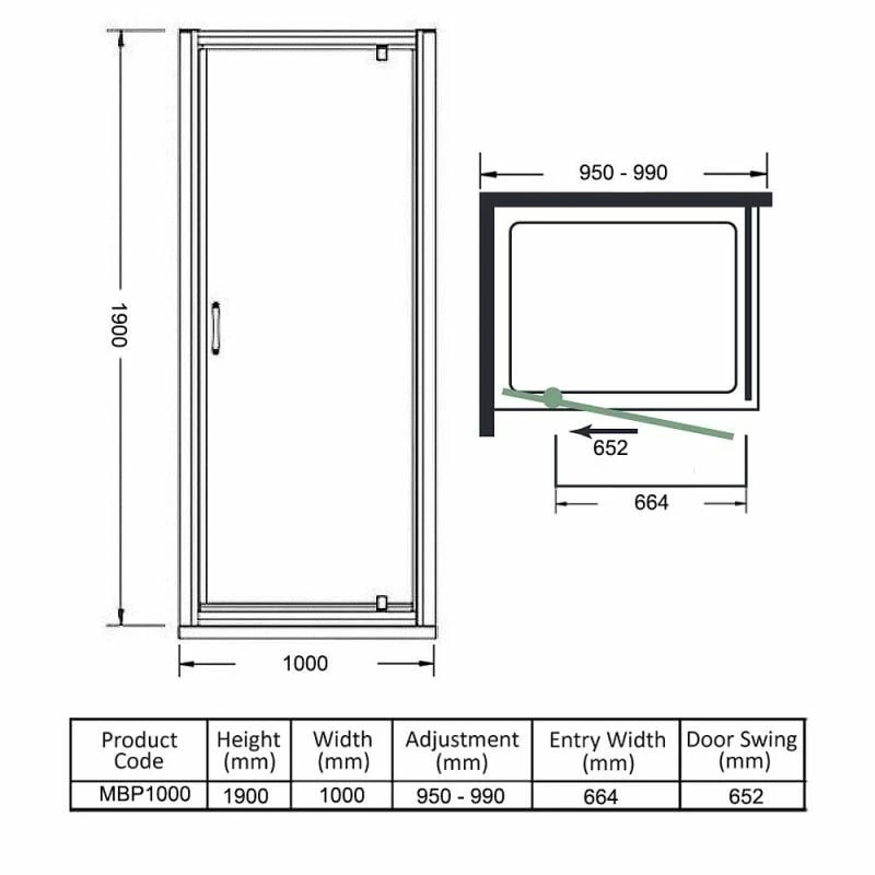 Merlyn MBOX 1000mm Pivot Shower Door – MBP1000