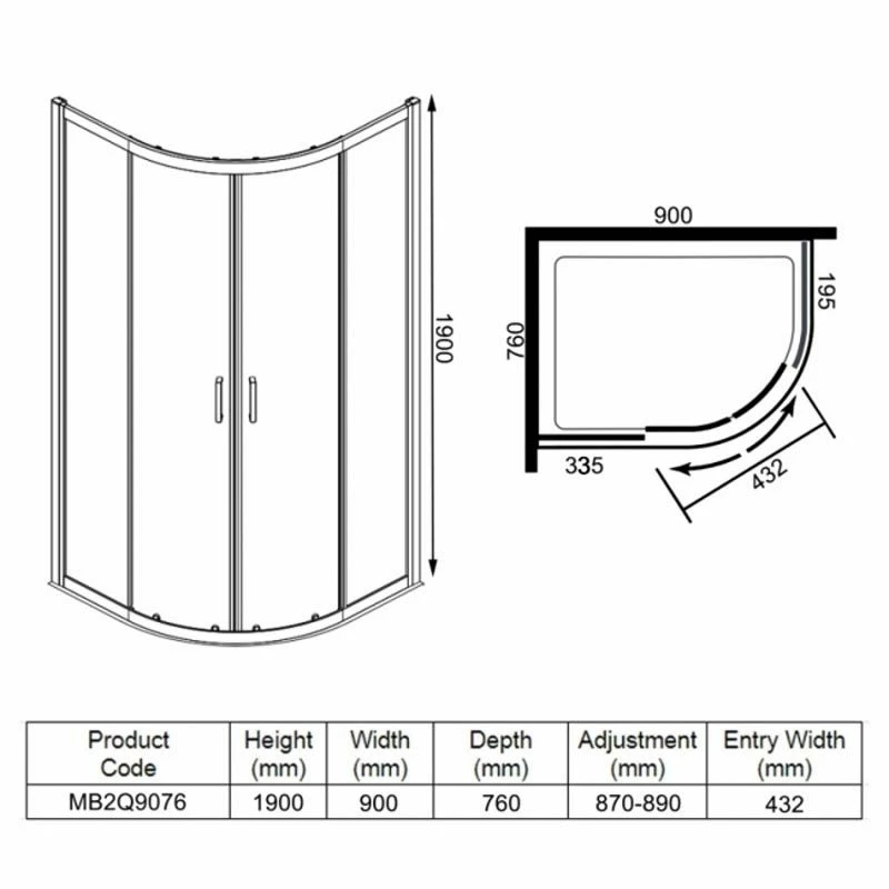 Merlyn MBOX 2 Door Offset Quadrant Shower Enclosure 900 x 760mm – MB2Q9076