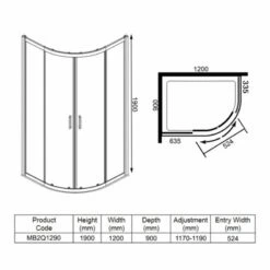 Merlyn MBOX 2 Door Quadrant Shower Enclosure 1200 X 900mm – MB2Q1290