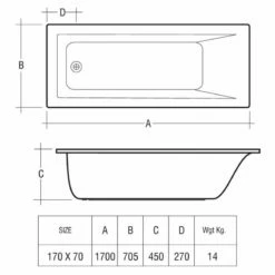 RAK Metropolitan Single Ended Rectangular Bath 1700 x 700mm – BT57AWHA Details