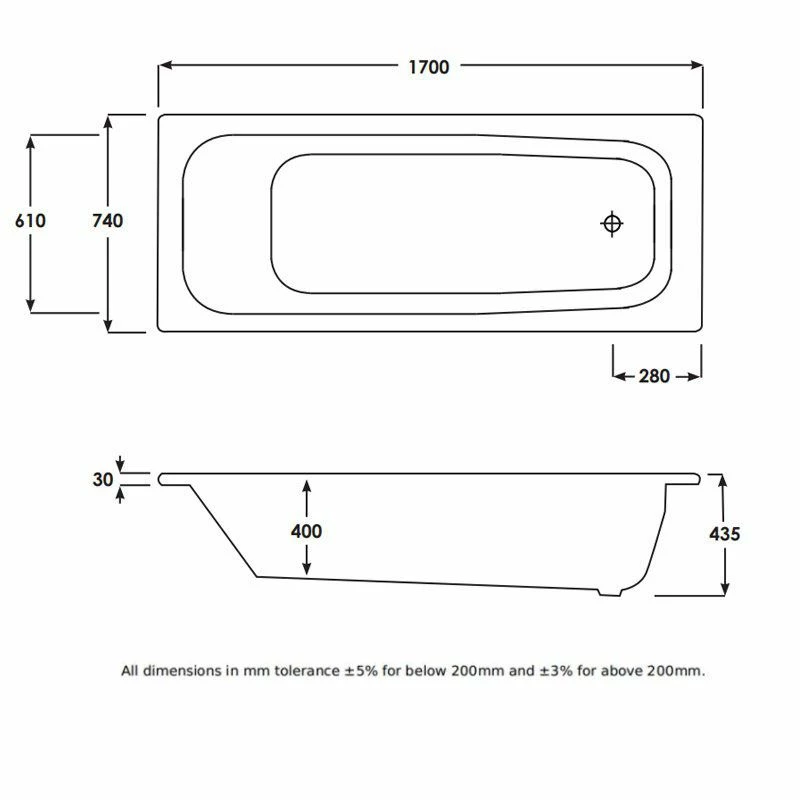 RAK Orient Single Ended Rectangular Bath 1700 x 750mm – BT01AAWHA Details